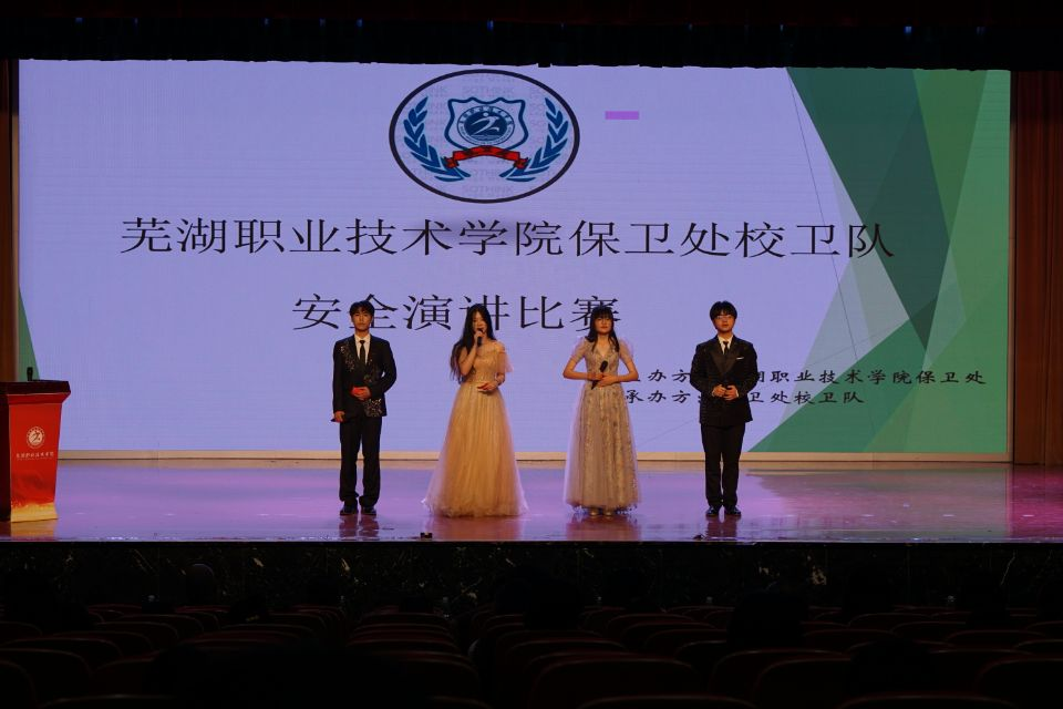 为进一步增强在校大学生安全教育,掌握安全防范知识,提高大学生自我保护能力。5月6日晚,由保卫处主办、校卫队承办的芜湖职业技术学院2023年校园安全演讲比赛在文津校区大礼堂顺利举行。